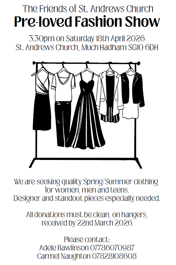 Much Hadham: Text MHSTANDREW to 70085 to give £5. Texts cost £5 plus one standard text message.